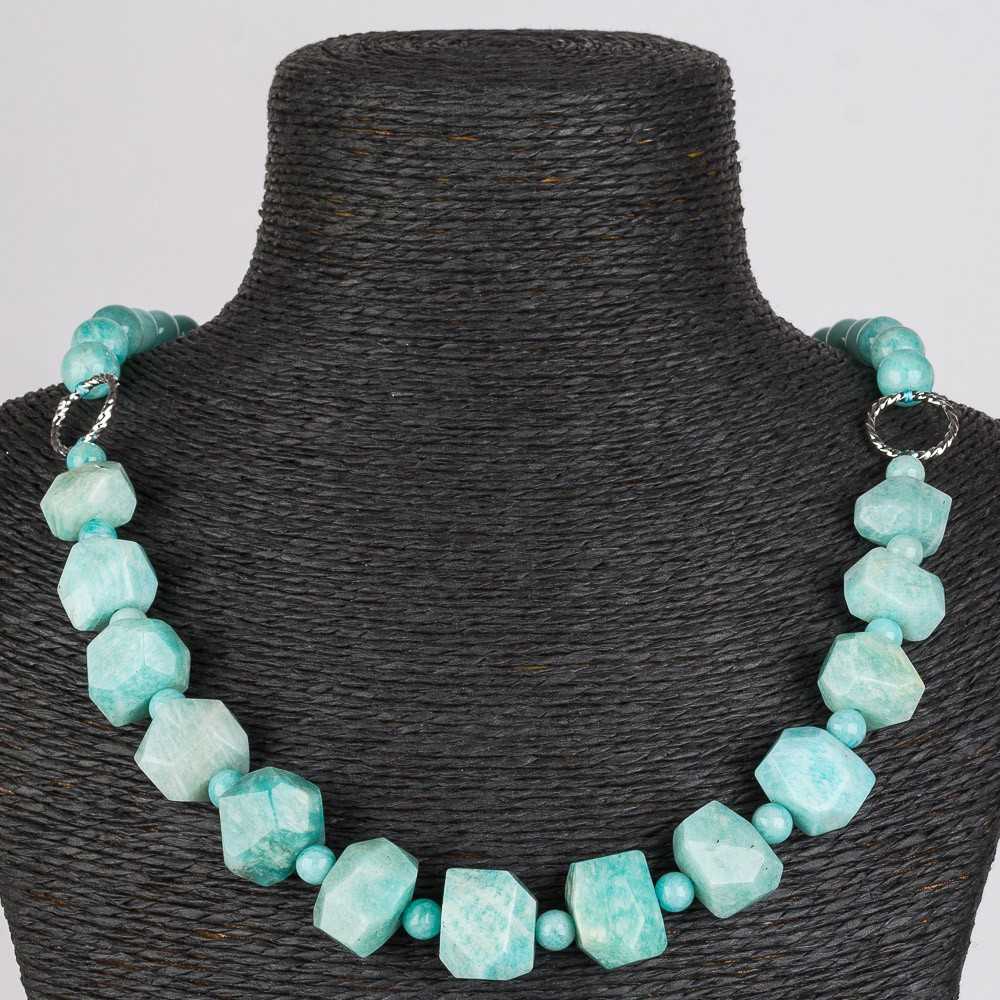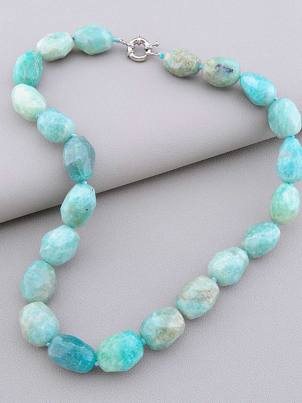 В украшении из ограненного амазонита содержится сила, направленная на коррекцию любовной кармы. Когда с любимым человеком наступила темная полоса, самоцвет поможет пережить это непростое время с меньшими потерями.