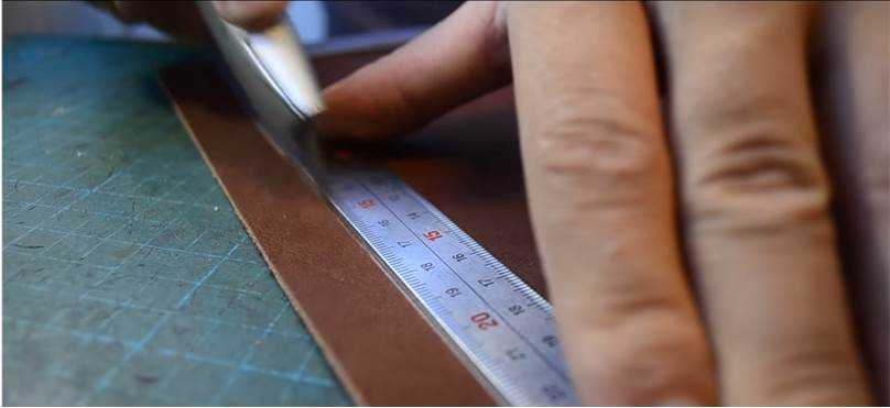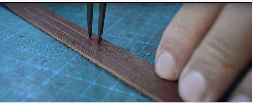 Отрезать кусок плотной кожи шириной 1,5 см. Длина должна быть равна обхвату запястья, плюс 1-1,5 см. Слишком свободный браслет будет спадать.