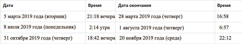 Как мы уже упоминали ранее, Меркурий — это важная планета, и может иметь значительные влияния на наши жизни в течение своего ретроградного периода. Такой цикл Меркурия можно просто рассматривать как определенный отрезок времени, в течение которого эта планета движется в обратном направлении, начиная с замедления, пока его движение в прямом направлении, и через некоторое время оно становится неподвижным, а затем он начинает двигаться назад от своей стационарной фазы, и это означает старт ретроградного Меркурия. Заканчивается эта фаза, когда он возвращается к нормальному движению или становится прогрессивным. Ниже приводятся даты и сроки ретроградных периодов Меркурия в 2019 году.
