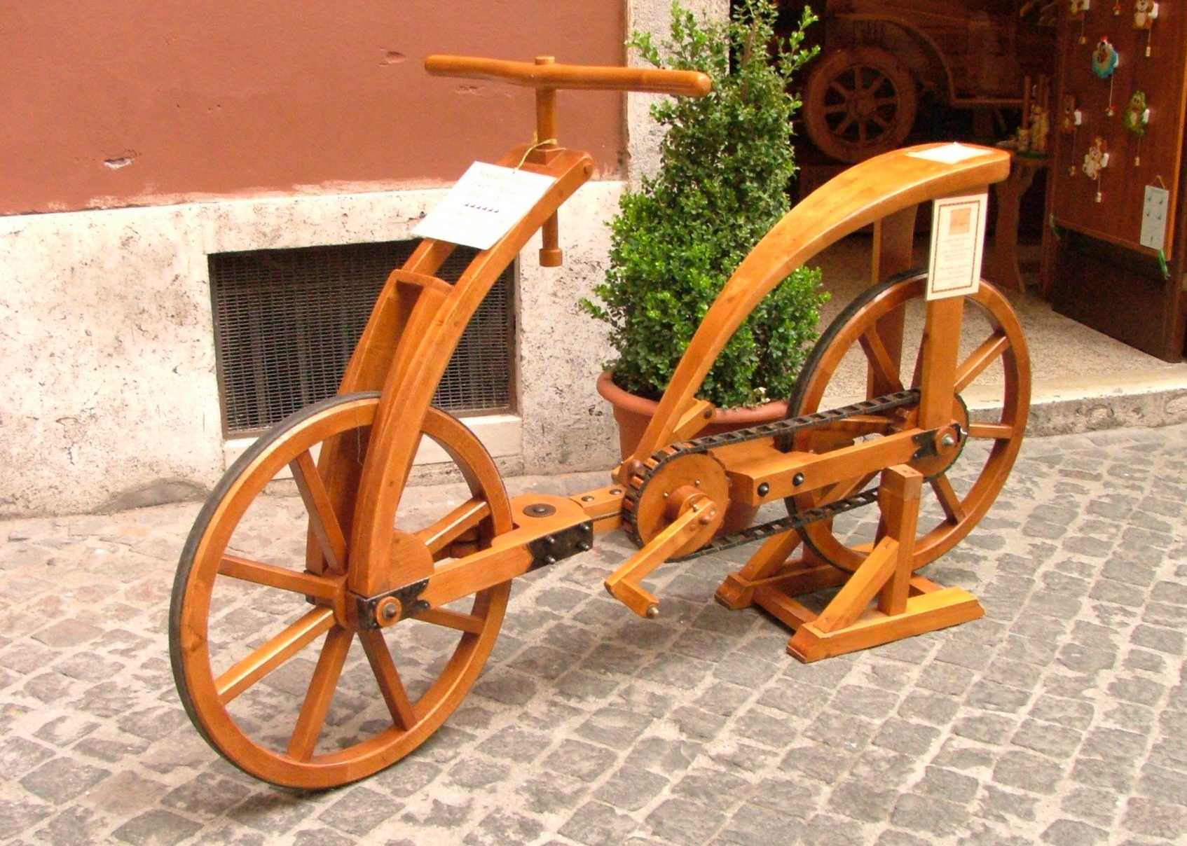 В 1493 году Леонардо да Винчи нарисовал средство передвижения с 2 колесами, рулем, педалями и цепью. Правда, по его эскизу велосипед никогда не мастерили.