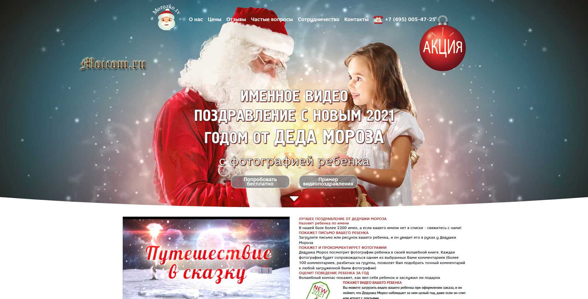 На сайте морозко тв можно заказать именное видео поздравление с новым 2021 годом от Деда Мороза с фотографией вашего ребенка. В базе более 2200 имен детей. Пришлите видео с реакцией ваших детей и вы получите скидку 20% на следующий заказ.