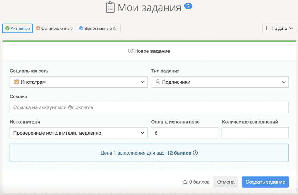 Чтобы накрутить подписчиков через Босслайк, вам нужно сначала купить баллы, а потом ими оплачивать задания. Также можно заработать баллы, не пополняя счет.