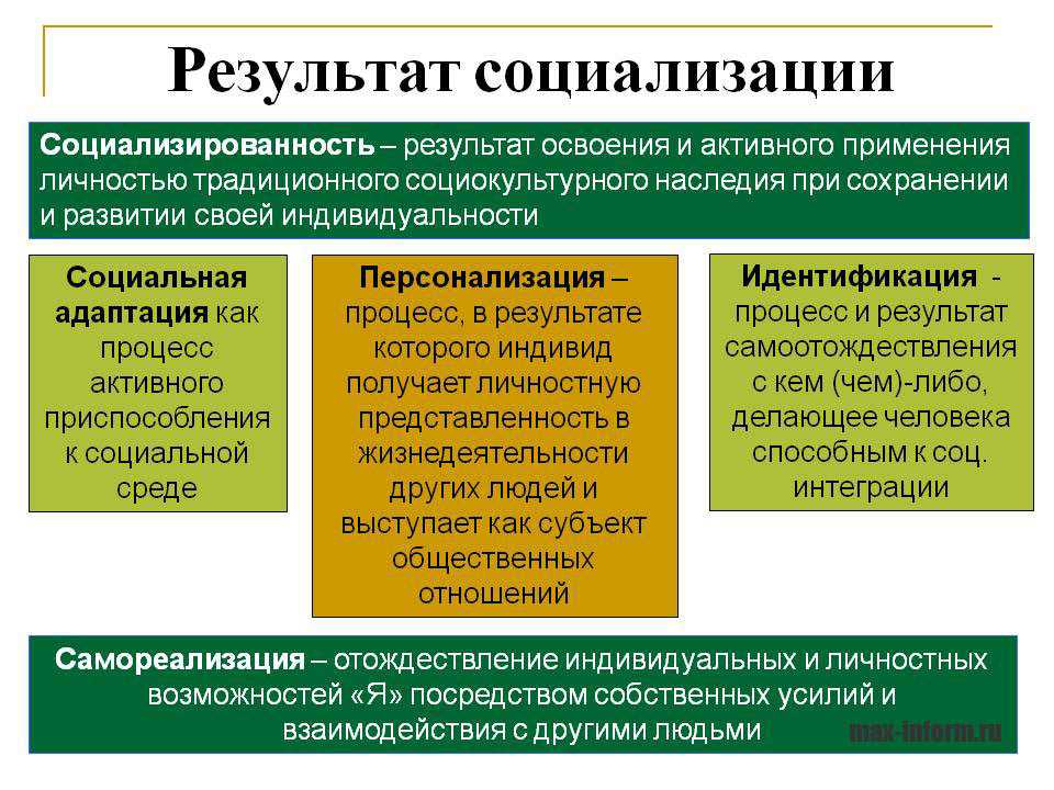 Успешная социализация — это социализация, при которой индивидуальность человека сохраняется и утверждается, и в то же время человек интегрируется в социальную группу.