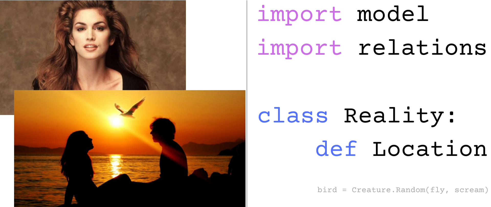 И модели, и отношения надо будет задать соответствующими командами. Когда мы запустим программу, машина сначала исполнит команды, описывающие модели и их отношения, а затем команду по вычислению результата. Способ получения результата (но не сам результат) тоже надо будет указать.