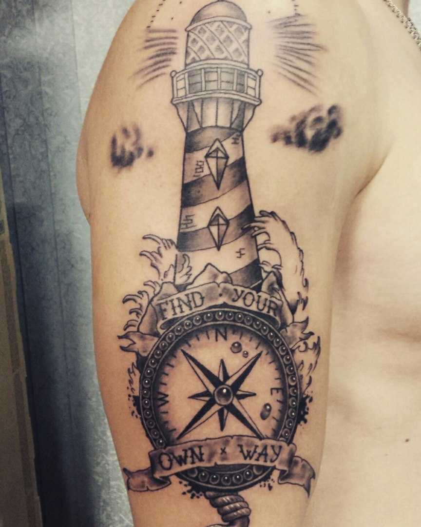 Изображение компаса содержит и несколько морских рун, поэтому моряки наносили его на свое тело в обязательном порядке. Считалось, что такой рисунок поможет победить в морском сражении, найти правильный путь в тумане. Интересен тот факт, что когда искусство татуировок было не так развито, как теперь, моряки рисовали себе этот символ на лбу углем. Они им очень помогал.